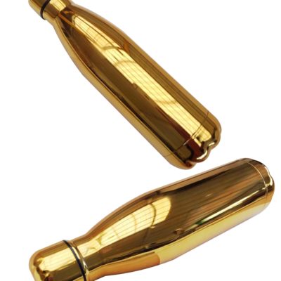 TERMO CON DOBLE CAPA, ACERO INOXIDABLE EN SU INTERIOR Y ALUMINIO POR FUERA.