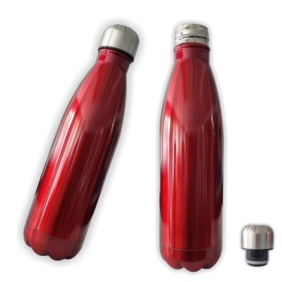 TERMO EN FORMA DE BOTELLA EN ACERO INOXIDABLE EN SU INTERIOR, CON TAPA ANTI DERRAMES