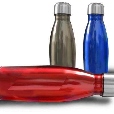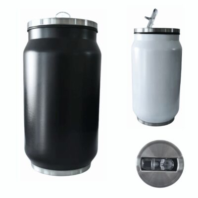 TERMO EN FORMA DE BOTELLA EN ACERO INOXIDABLE EN SU INTERIOR, CON TAPA ANTI DERRAMES
